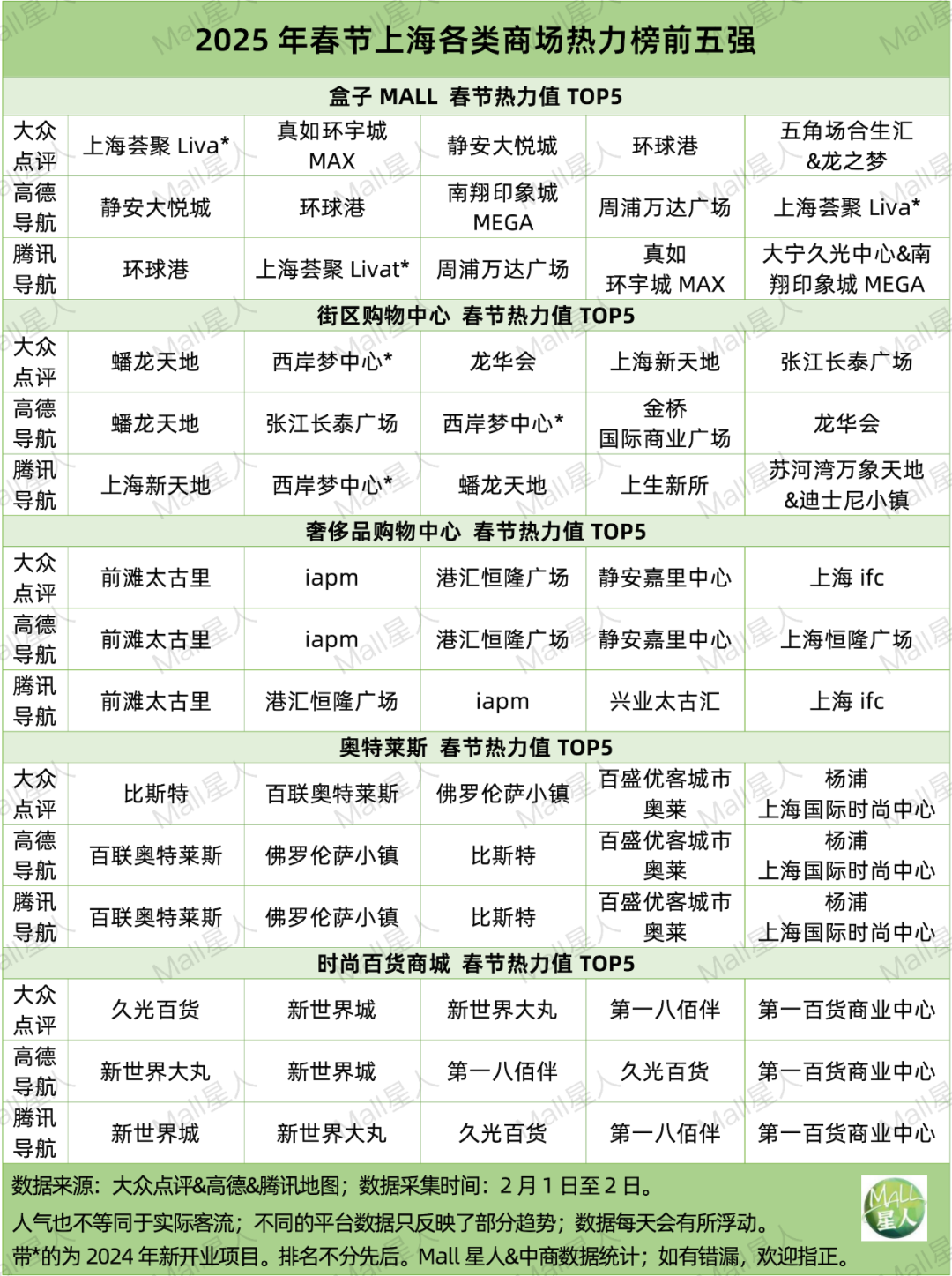 需要注意的是:各區(qū)商場(chǎng)數(shù)量和發(fā)展態(tài)勢(shì)不同,因此盤點(diǎn)的熱門商場(chǎng)數(shù)量也有所不同;這些數(shù)據(jù)僅反映春節(jié)期間的短期熱度,不代表平時(shí)或全年的表現(xiàn);上榜項(xiàng)目排名不分先后,畢竟每個(gè)商場(chǎng)都有自己的特色和亮點(diǎn)。
