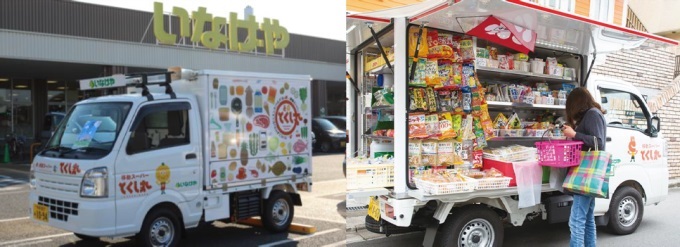 以歷史上著名的貴族開設(shè)的鮮魚店起家的稻毛屋(いなげや)超市為例,2025年2月又開啟29號車拓展移動零售。該企業(yè)在2017年10月開設(shè)第一輛移動零售車。定制車輛帶有冷藏功能,其規(guī)模為400種商品、1200件單品,經(jīng)營模式是委托給個人運營,從本企業(yè)店鋪拿貨,當(dāng)日銷售以后回店補(bǔ)貨、換貨。其目的主要有4點:照顧購買弱者、提供安全食品、和社區(qū)消費者開心溝通、增加個體就業(yè)、巡視社區(qū)和部分顧客健康狀態(tài)。