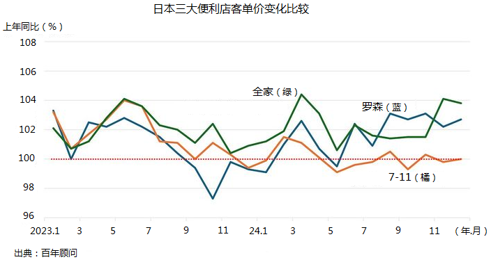 或許受此影響,2025年1月27日,7-11公示,向上調(diào)整價格,針對2024年9月份開始銷售的“開心價”系列政策,包括飯團(tuán)、便當(dāng)?shù)然A(chǔ)商品。調(diào)價大背景是大米價格高漲。但是,鈴木敏文時代7-11的策略是:即便價格高一點,質(zhì)量卻是很好的。但隨著決策班子變化,消費偏好變化,7-11有意無意之間轉(zhuǎn)向薄利多銷思路,導(dǎo)致客單價和經(jīng)營利潤下降。而羅森、全家則堅持價格基準(zhǔn)線,提高內(nèi)容價值。羅森是在保持價格的基礎(chǔ)上,提出“挑戰(zhàn)裝滿”的口號,就是價格不變的前提下,飯量給多。全家的口號是“同樣價格、又大又好吃,增量40%”,即加量不加價的策略。