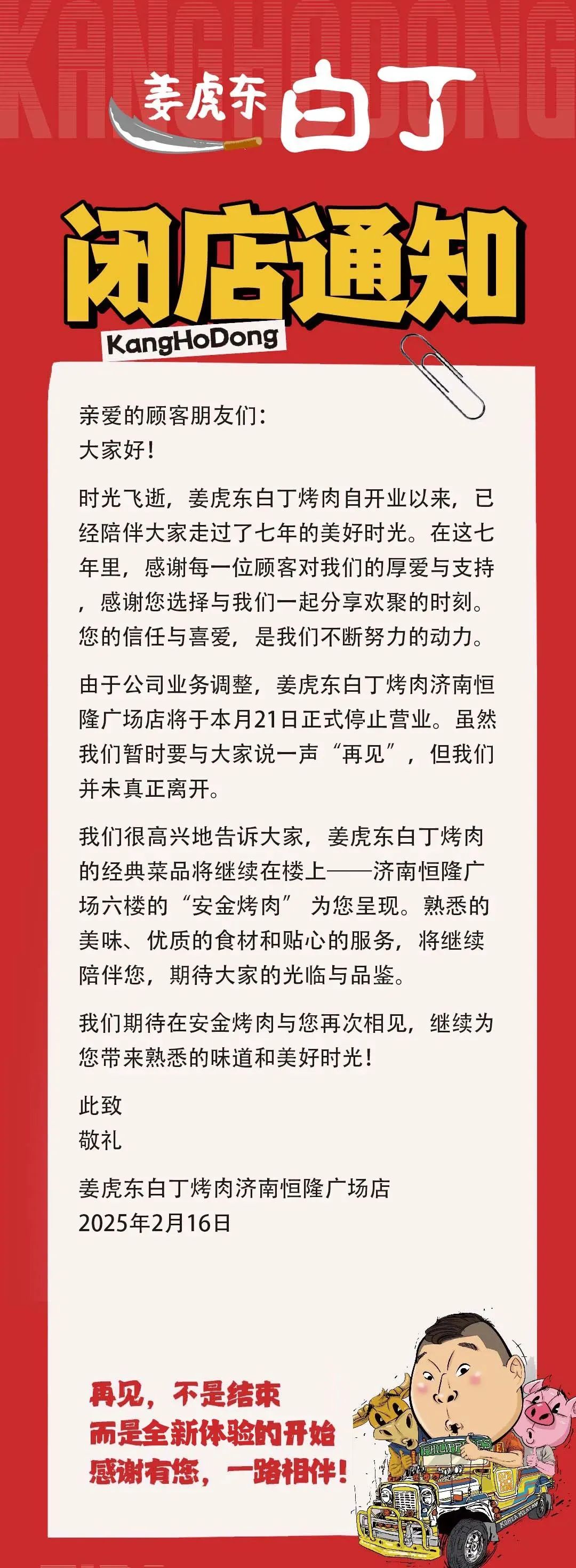 位于濟南恒隆廣場的一家門店,近期發(fā)布閉店通知稱“門店陪伴消費者7年,將在本月21日正式停業(yè)”。