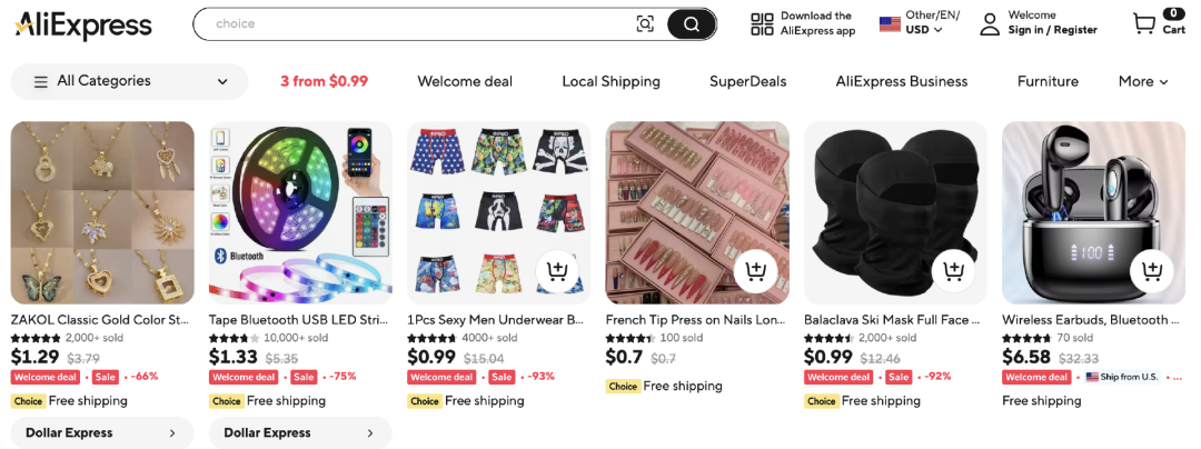 2023年3月速賣通又推出了Choice業(yè)務,提供90天內(nèi)無理由退貨和送貨時效保證,與競爭對手搶用戶。后續(xù)為了搶商家,增加商家的運營權(quán)、定價權(quán)和利潤空間,速賣通又開放了半托管、海外托管等模式。