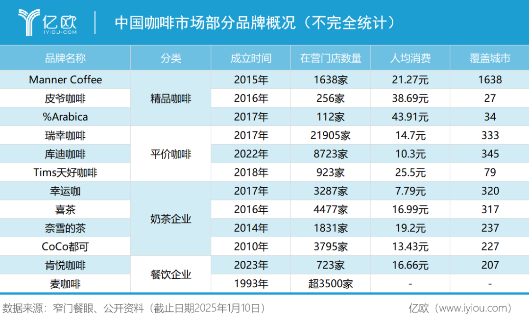 億歐根據(jù)公開資料整理了中國咖啡市場部分品牌概況: