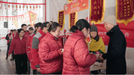 2月12日元宵節(jié)當(dāng)天,缸鴨狗為京東物流一線員工送上5000份湯圓,在寧波一處倉(cāng)庫(kù),缸鴨狗董事長(zhǎng)陳開河、缸鴨狗高級(jí)合伙人羅子羽,親手將湯圓遞到京東物流員工手中,并送上節(jié)日的祝福:“感謝你們的辛勤付出,讓我們的湯圓能夠以最快的速度送到消費(fèi)者手中。今天是元宵節(jié),希望你們也能嘗到這份溫暖!边@場(chǎng)暖心活動(dòng)不僅拉近了缸鴨狗與京東物流的距離,也讓一線員工感受到了節(jié)日的溫暖。