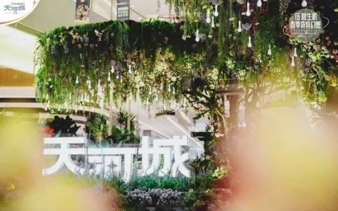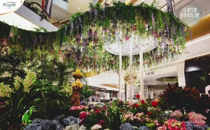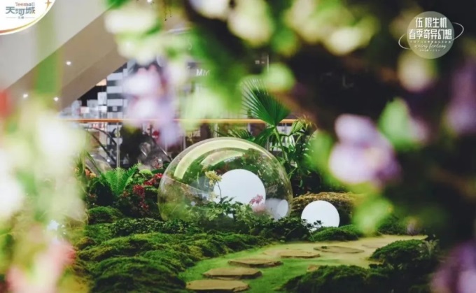 天津天河城購物中心此前打造過一場主題為“伍”限生機春季奇異幻想的美陳藝術裝置活動,