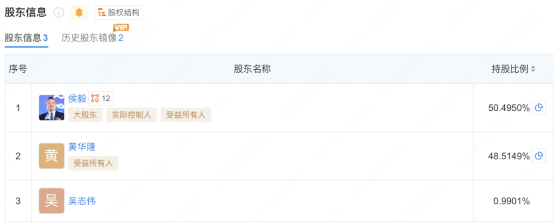 目前,「派特鮮生」侯毅持有公司股權(quán)50.495%,為公司實控人,黃華隆為第二大股東,持股比例為48.51%。黃華隆也是寵物用品制造商耐威克的創(chuàng)始人兼董事長。