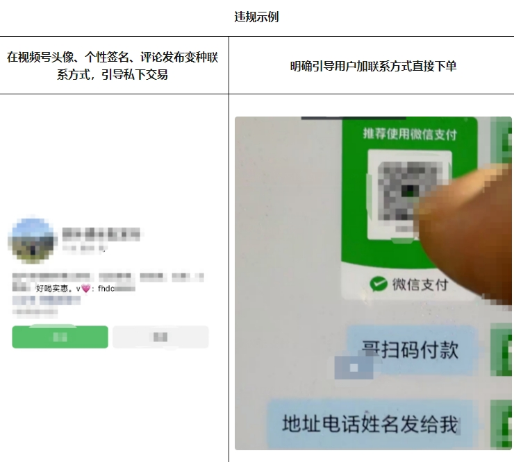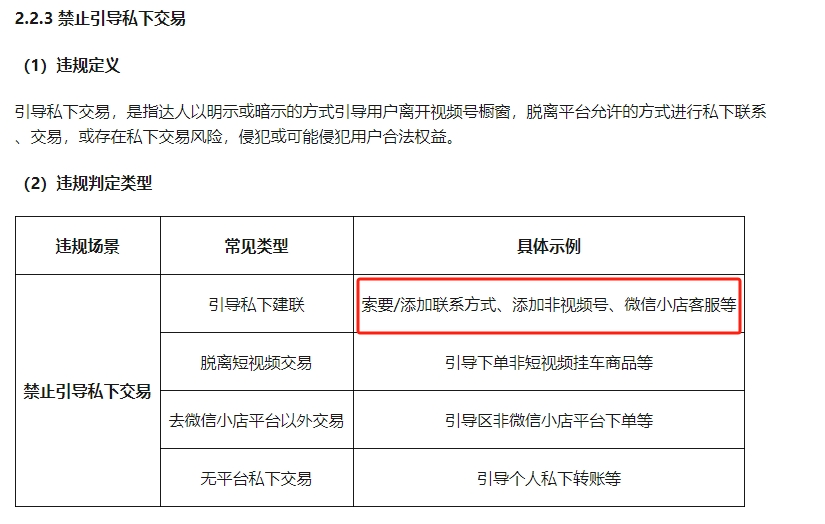 值得一提的是,在同一時(shí)期,微信團(tuán)隊(duì)也更新了《視頻號(hào)帶貨短視頻宣傳規(guī)范》,明確禁止了私域?qū)Я鹘灰椎男袨椤?/p>