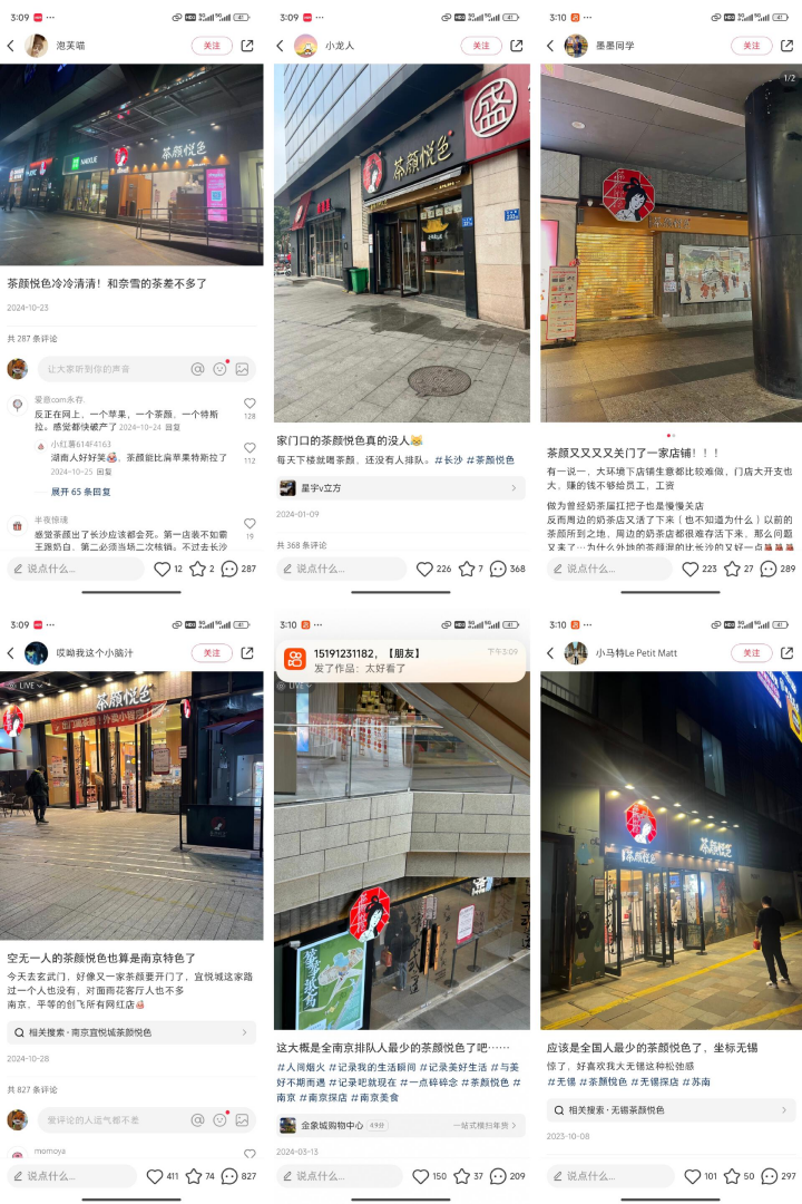 像這樣反映茶顏悅色門店冷清情況的筆記在小紅書上屢見不鮮。以往,茶顏悅色給大眾留下的印象是開到哪里就會(huì)火爆哪里,然而如今其他省份門店的冷清狀況打破了人們的固有認(rèn)知,從而引發(fā)了粉絲們集體性的“好奇潮”。