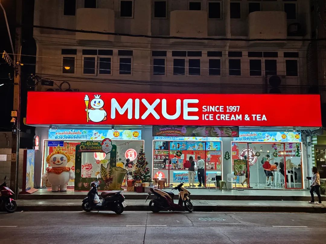 2022年,蜜雪冰城加速出海,很快,就以海外4800家門店、東南亞門店數(shù)第一的成績,確立了“現(xiàn)制飲品出海一哥”的地位。