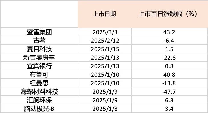 2025年以來(lái)新股上市首日股價(jià)表現(xiàn) 數(shù)據(jù)來(lái)源:Wind