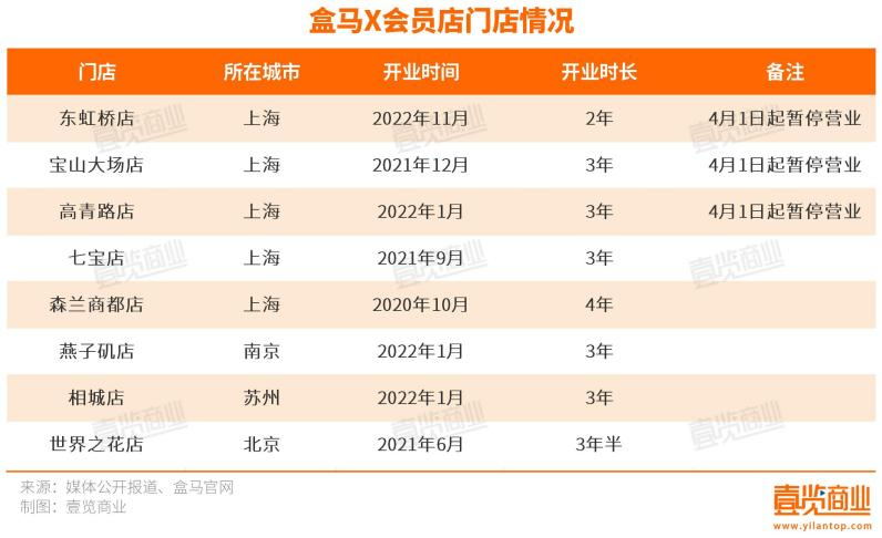 此次調(diào)整后,盒馬X會員店在上海僅剩森蘭店和七寶店兩家,全國范圍內(nèi)也僅余5家門店在運營。