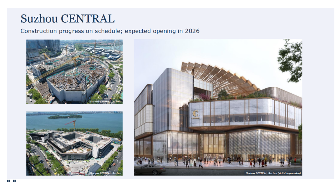 另一方面是,香港置地在江蘇除了南京JLC金陵中環(huán)項(xiàng)目,將于明年開業(yè)的蘇州湖東中環(huán)也是其重點(diǎn)項(xiàng)目之一。