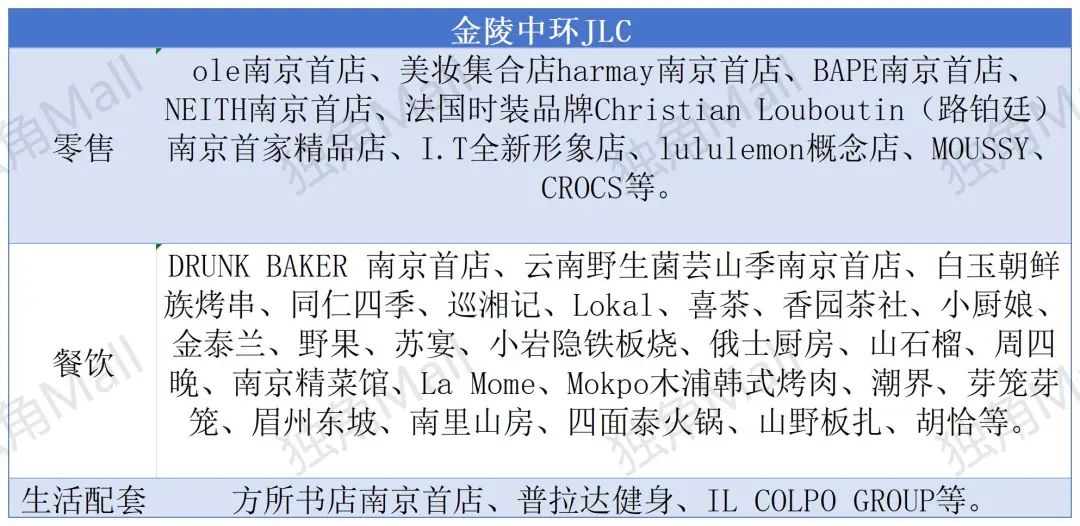 根據(jù)秦淮發(fā)布顯示,JLC金陵中環(huán)已經(jīng)完成了70%的招商任務(wù),以首店、形象店、旗艦店為主,并且還在競爭激烈的新街口引入了20多家首店餐飲品牌。
