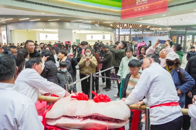 春節(jié)期間慈溪城西銀泰百貨開(kāi)展“殺豬宴”