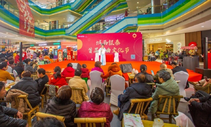 春節(jié)期間慈溪城西銀泰百貨開(kāi)展戲曲文化節(jié)吸引了不少中老年人觀看