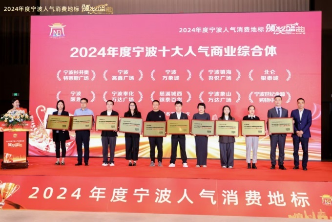 慈溪城西銀泰百貨獲評(píng)寧波市商務(wù)局頒發(fā)的“2024年寧波十大人氣商業(yè)綜合體”之一