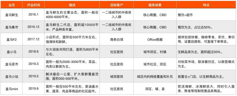 在這之后,盒馬開啟了不同店態(tài)的探索之路,期間更一路狂飆式開店,僅在2019年便開了約100家門店。