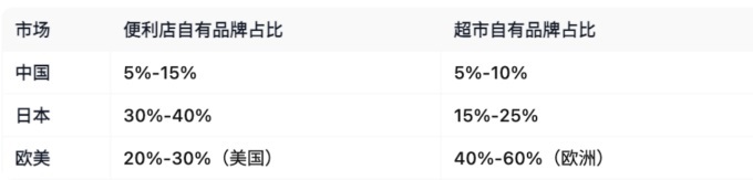 附錄1:便利店及超市自有品牌占比(中國vs日本vs歐美)