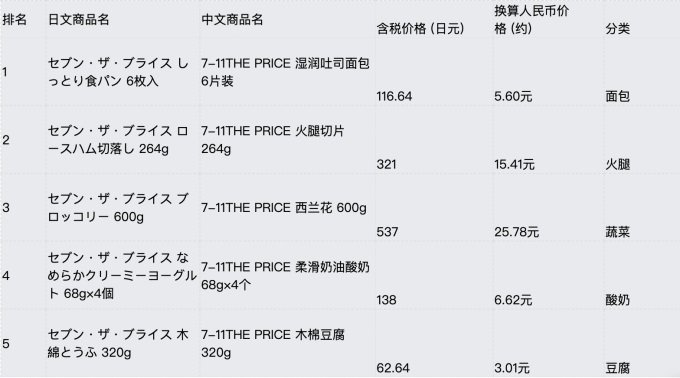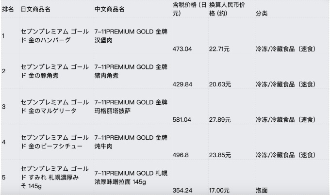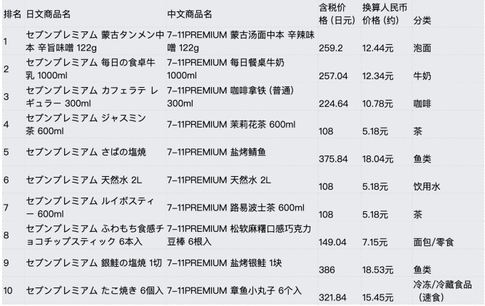 附錄2:Seven Premium(7-11優(yōu)品)2024年排行榜中文+價格換算