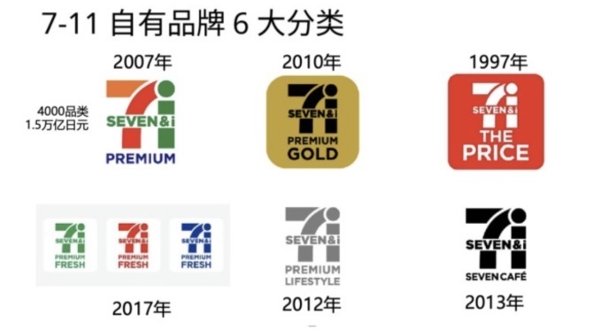 1997年,日本7-11推出“Seven Eleven Select”系列,這是其首個正式的自有品牌,主打高性價比。2007年,Seven Premium系列亮相;2010年,Premium Gold 系列亮相;2012年,Premium Lifestyle亮相;2013年:Premium Cafe亮相;2017年,Premium Fresh亮相。