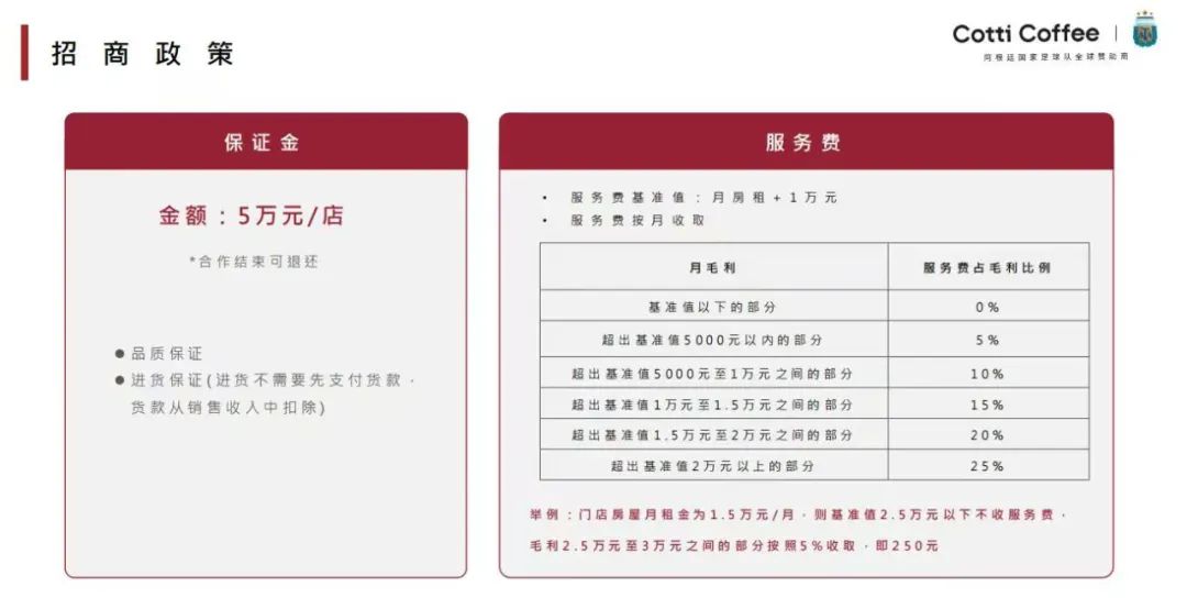 與開店計劃共同升級的,還有聯(lián)營商的服務費利潤分成模式。與傳統(tǒng)加盟模式不同,庫迪不收取加盟費,而是從聯(lián)營商毛利中按階梯抽取服務費。