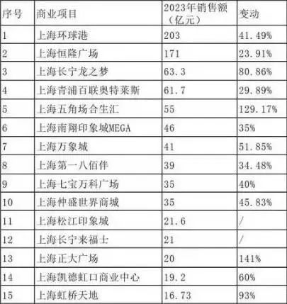 摘自《聯(lián)商網(wǎng)》發(fā)布的2023年全國部分商場銷售額名單