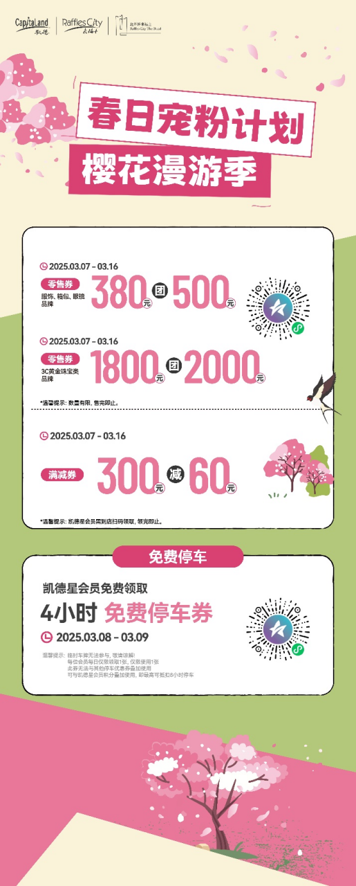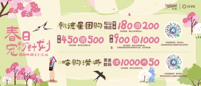3月8日至4月7日,凱德華東區(qū)多項(xiàng)目開啟“櫻花漫游季·春日寵粉計(jì)劃”。