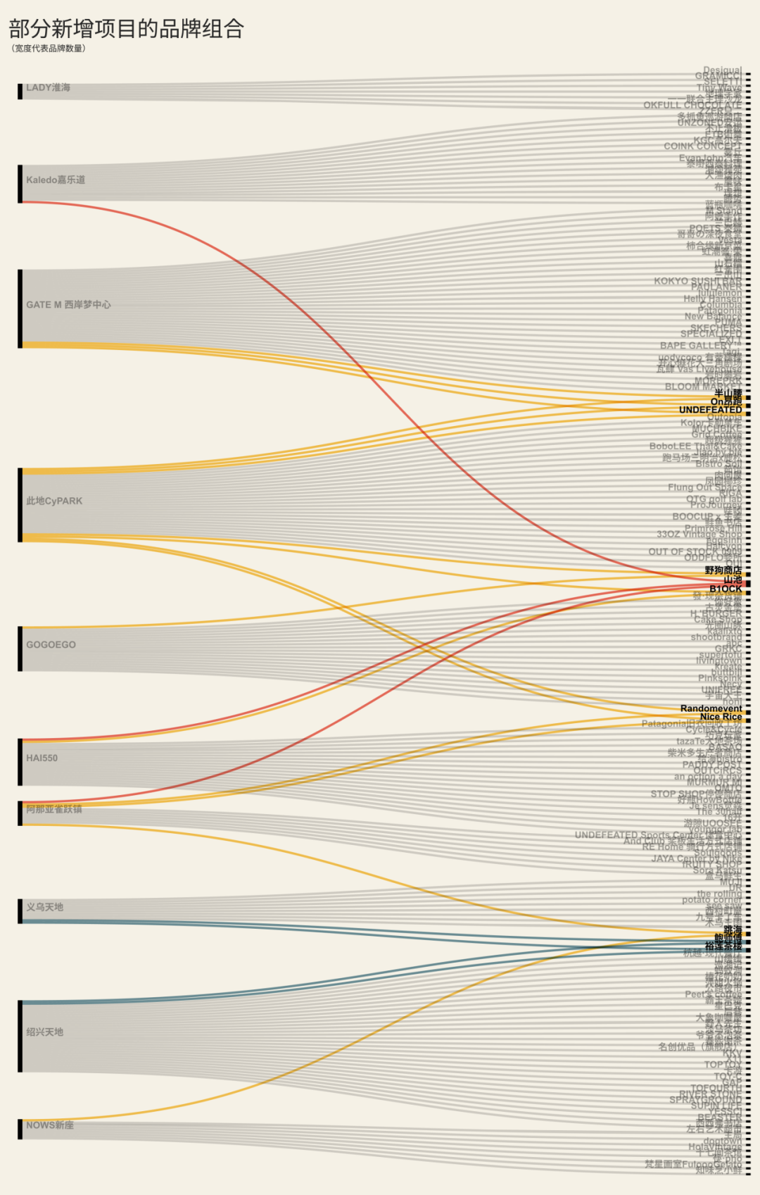 梳理2024年新增非標(biāo)商業(yè)項(xiàng)目中的品牌,可以發(fā)現(xiàn)一些新?,比如山池咖啡、買手向的B1OCK和野狗商店、運(yùn)動(dòng)品牌昂跑和Undefeated、以及服裝品牌Nice Rice和Randomevent等等都有跨區(qū)域或跨項(xiàng)目的擴(kuò)張。