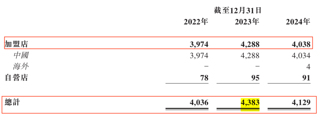 周六福運作的核心之一在于品牌運營,主推的是加盟模式。招股書顯示,截至2024年底,周六福的門店共有4129家,其中加盟店4038家、自營店91家,加盟店占比約98%。