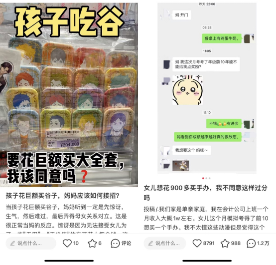 不少父母在社交平臺上真誠發(fā)問,“孩子要拿幾千塊買大全套該不該給” “孩子沉迷吃谷怎么辦” “為什么XX吧唧這么貴”……
