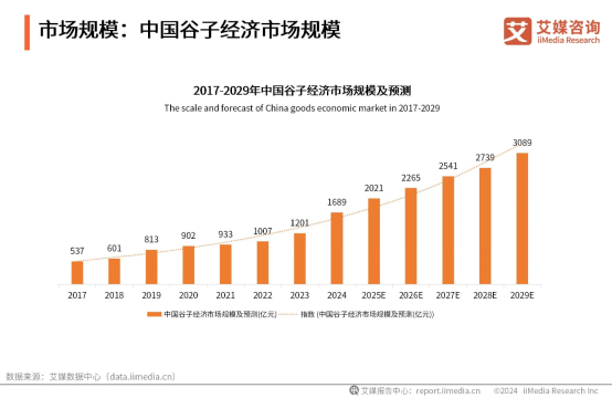 這個年輕人的小眾愛好,卻撐起了千億的谷子經(jīng)濟。根據(jù)艾媒數(shù)據(jù),2024 年中國谷子經(jīng)濟的市場體量已擴張至1689 億元,預(yù)計到 2029 年將達到 3089 億元。