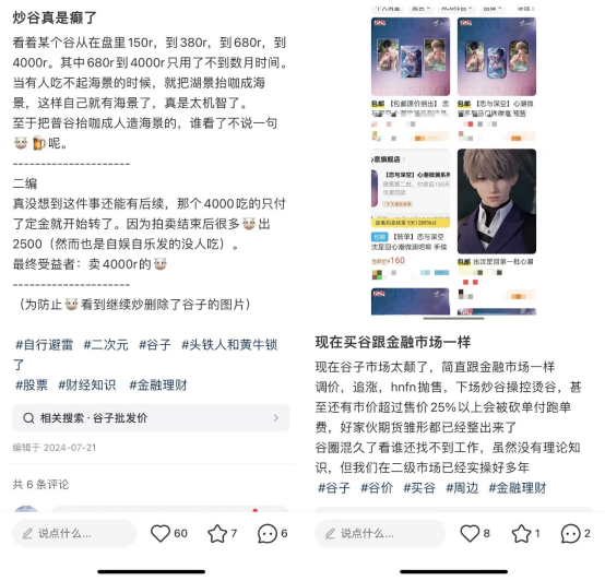 二次元愛好者的谷穗(化名)表示,自己是學(xué)生黨沒什么錢,“吃谷”確實有負擔(dān),也有想過退出谷圈,但又會忍不住問自己,難道不是因為愛才買的谷嗎?