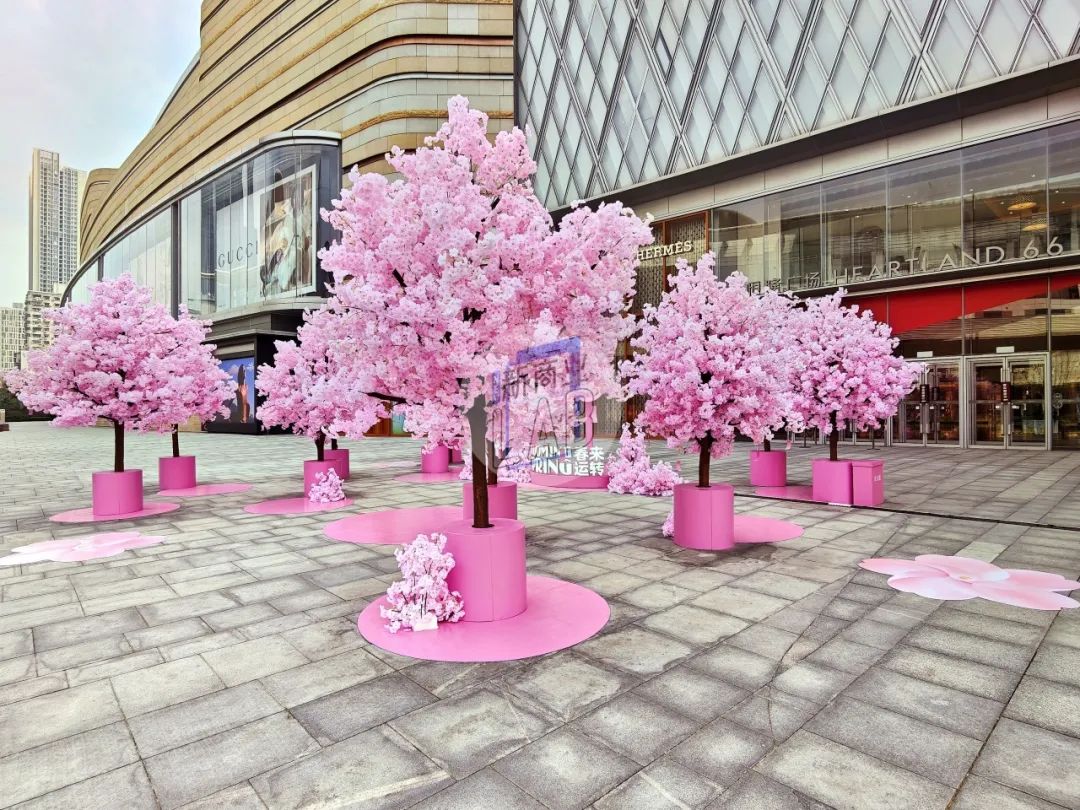 在東座外廣場、西座外廣場、東座L1主中庭、東座L2(近LOUIS VUITTON)、L2輕軌連廊 (近木從久),武漢恒隆廣場布置了「春日風(fēng)境、花徑跑道、櫻雨瀑布、櫻境秋千、櫻花步道」這5處不同風(fēng)格的櫻花打卡點。