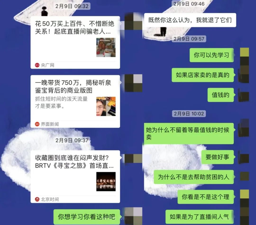 例如主播會介紹“古董”的來源是“某某墓穴”,并且是“傳世珍寶”,現(xiàn)在低價購買,未來有望成千上萬倍地增值。層層套路和誘導(dǎo)話術(shù)的影響下,一部分老年人對直播間的內(nèi)容和商品深信不疑。即便親屬后續(xù)請專家出具了鑒定報告,告知老人買的古董均為近代仿品,一些老人也不為所動,甚至認(rèn)為是親人想“斷其財路”。