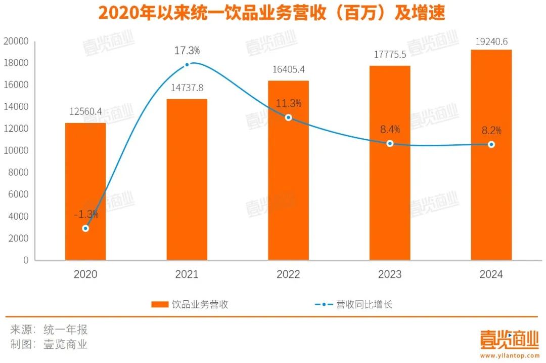 從營(yíng)收增速看,2024年,統(tǒng)一飲品業(yè)務(wù)營(yíng)收達(dá)192.41億元,同比增長(zhǎng)8.24%,業(yè)務(wù)規(guī)模連續(xù)4年擴(kuò)大。而且,自2020年以來(lái),飲品業(yè)務(wù)的年復(fù)合增長(zhǎng)率達(dá)11.3%,高于同期總收入7.4%的年復(fù)合增長(zhǎng)率,說(shuō)明飲品業(yè)務(wù)的增長(zhǎng)速度不僅快,而且持續(xù)超過(guò)公司整體增長(zhǎng),成為拉動(dòng)總收入的主要?jiǎng)恿Α?o:p>