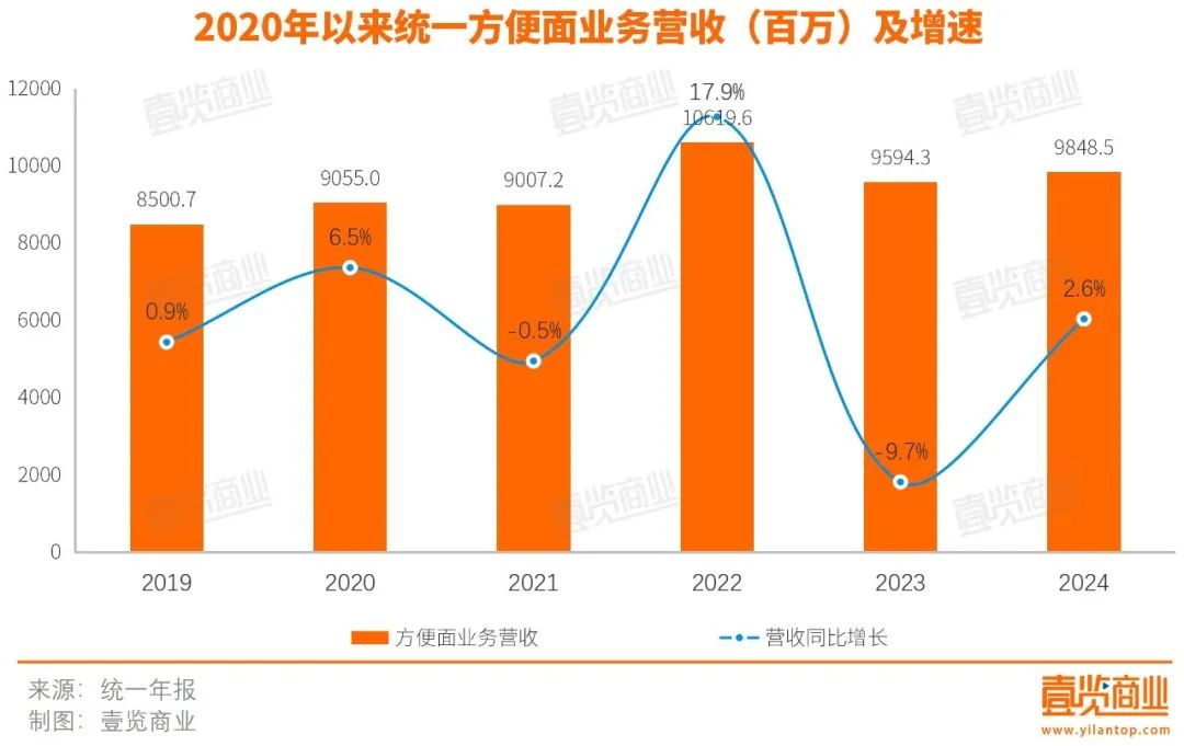 但這些新品并未在市場(chǎng)上掀起太大波瀾,在2024年的業(yè)績(jī)公告中,也并未提及這些產(chǎn)品的銷(xiāo)量,僅從方便面業(yè)務(wù)的營(yíng)收增速看,2%的增長(zhǎng)也非常有限。