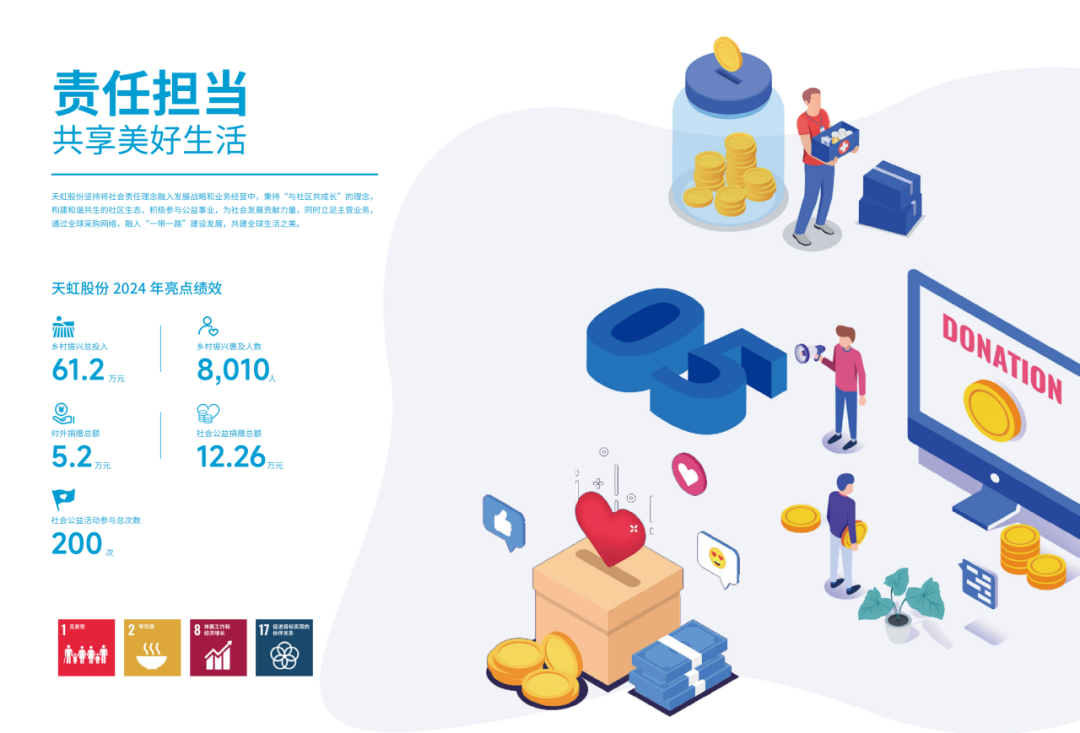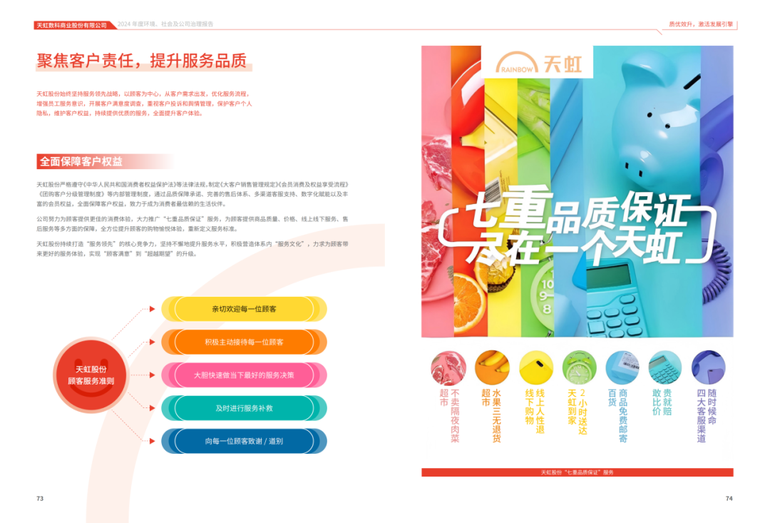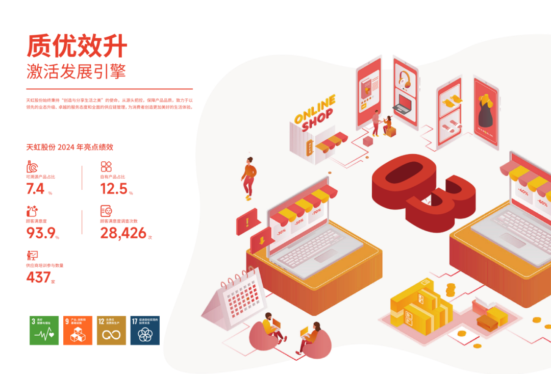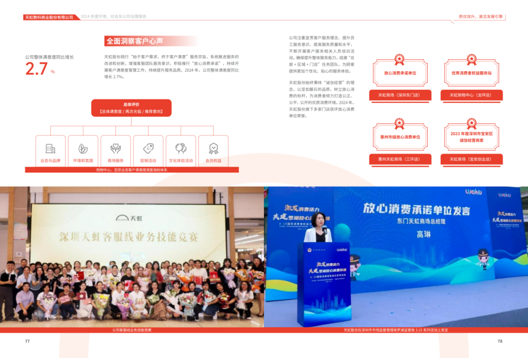 在充滿變革與挑戰(zhàn)的2024年,天虹股份繼續(xù)推進(jìn)環(huán)境、社會(huì)和公司治理的深度融合,并取得了顯著進(jìn)展。