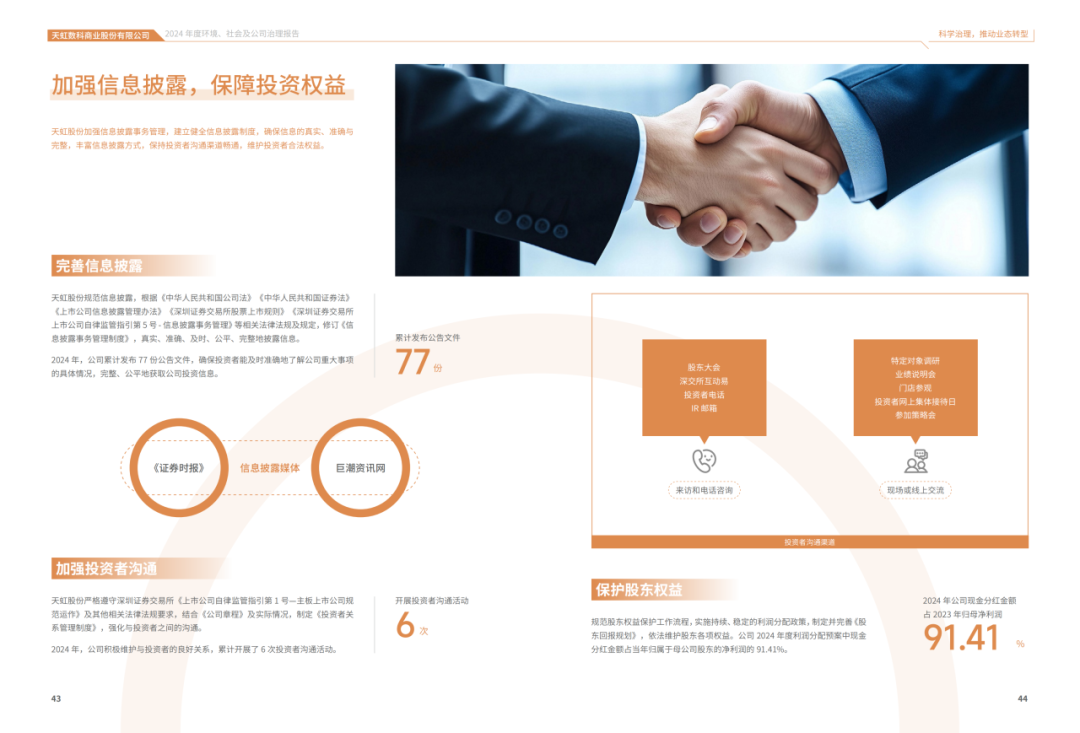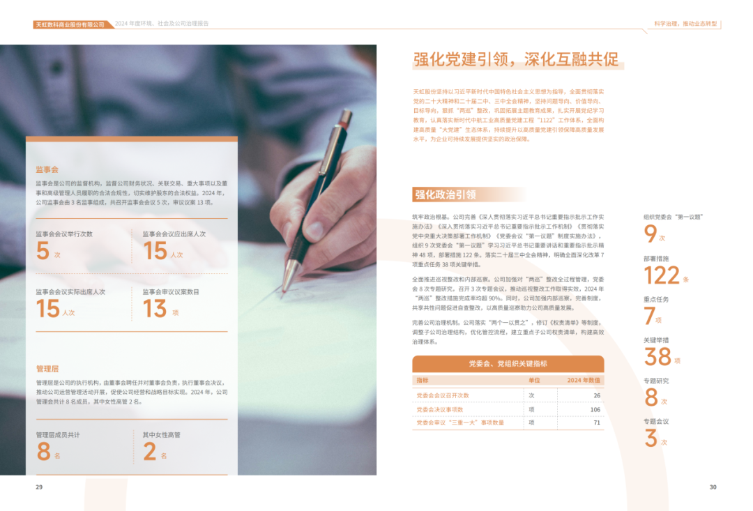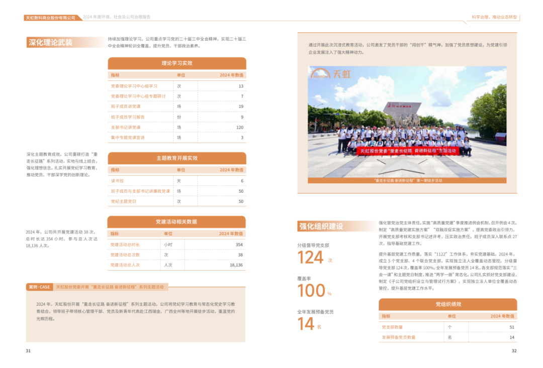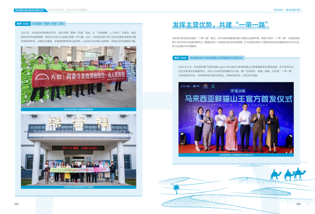 在充滿變革與挑戰(zhàn)的2024年,天虹股份繼續(xù)推進(jìn)環(huán)境、社會(huì)和公司治理的深度融合,并取得了顯著進(jìn)展。
