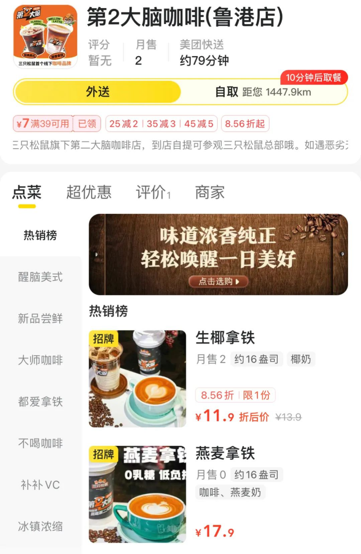 在公司注冊(cè)成立后,三只松鼠迅速在APP上線了“第二大腦”咖啡系列產(chǎn)品,包括“醒腦美式”“大師咖啡”“都愛(ài)拿鐵”等近20種SKU,并推出團(tuán)購(gòu)套餐。同時(shí),三只松鼠在江蘇蕪湖總部?jī)?nèi)開(kāi)設(shè)了首家門(mén)店,目前僅對(duì)員工開(kāi)放。