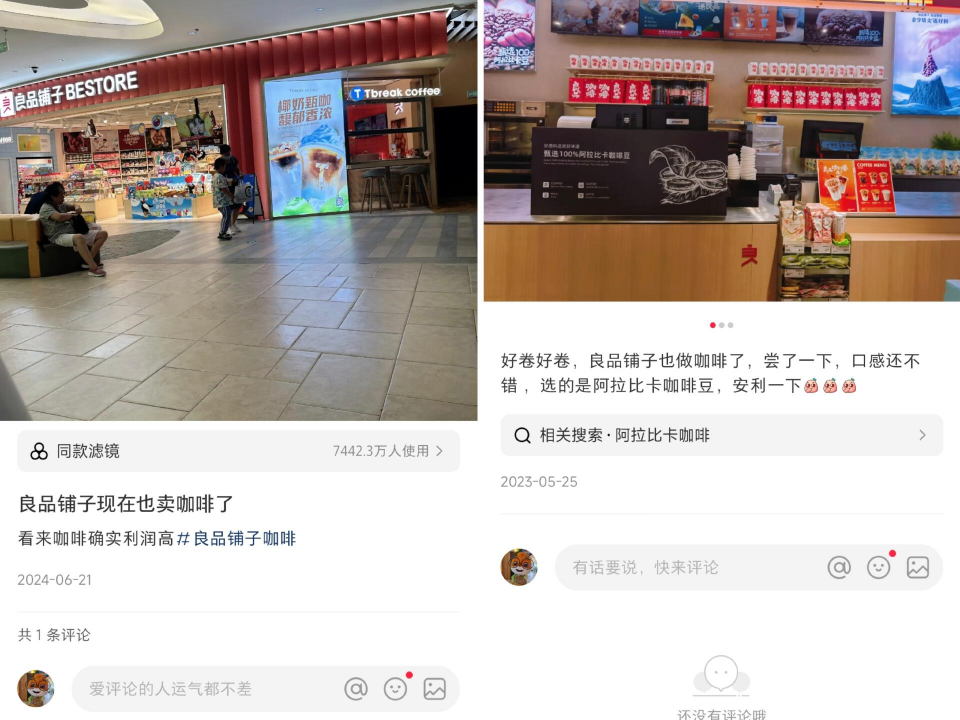 早在2023年,良品鋪?zhàn)泳团cTims天好咖啡達(dá)成合作,在良品鋪?zhàn)娱T(mén)店內(nèi)開(kāi)設(shè)咖啡店。根據(jù)合作協(xié)議,雙方將探索在部分良品鋪?zhàn)娱T(mén)店開(kāi)設(shè)小型 Tims Express(靈楓店),進(jìn)一步拓展客群,打造更加多元的消費(fèi)場(chǎng)景