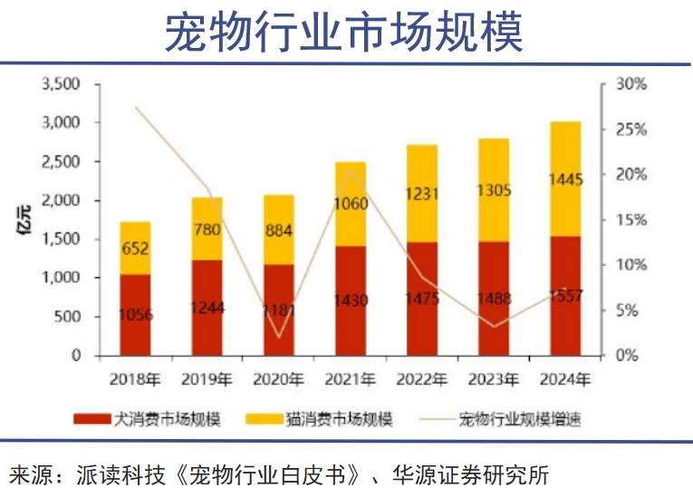 目前中國(guó)城鎮(zhèn)寵物數(shù)量剛突破1.2億只(犬5175萬(wàn)/貓6980萬(wàn)),養(yǎng)寵家庭滲透率達(dá)22%,但仍然顯著低于美日的60%、40%,未來(lái)增長(zhǎng)空間廣闊。