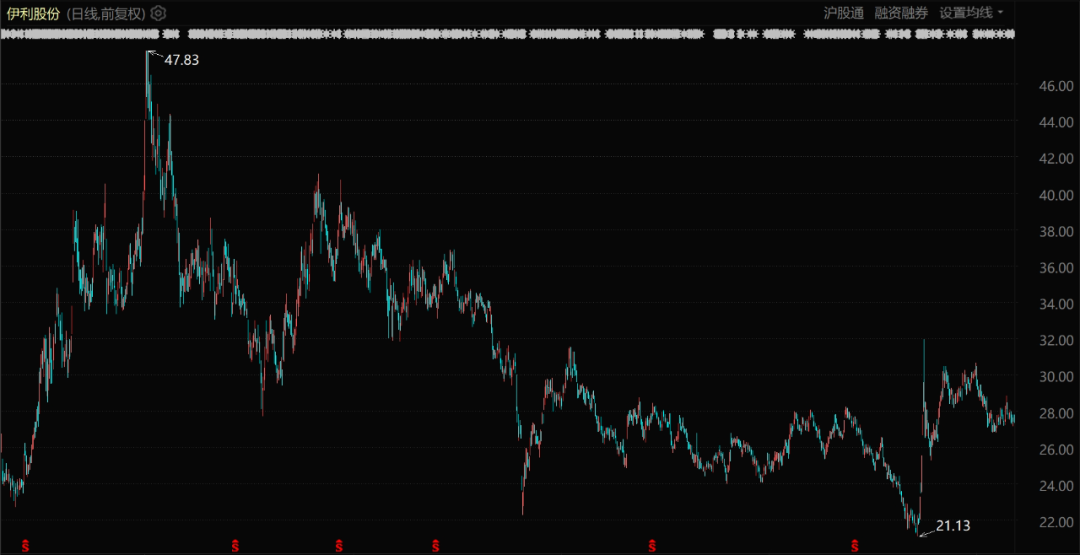 伊利股份股價(jià)表現(xiàn)(自2020年5月至今)