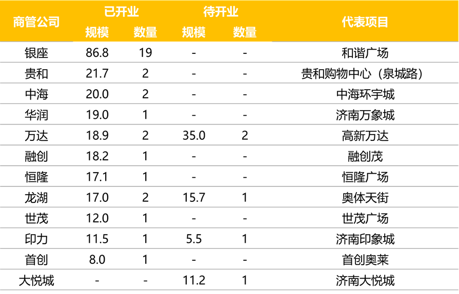 目前濟(jì)南市場(chǎng)上本土企業(yè)與全國(guó)性商管公司齊聚。