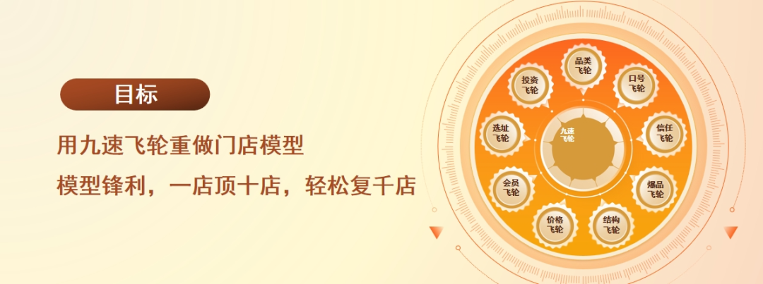 我也要轉(zhuǎn)型,這是我自己總結(jié)出來的方法論,從“九速飛輪”重做門店模型,從品類到口號、到信任、到爆品、到結(jié)構(gòu)、到價格、到會員、到選址、到投資,最終形成一個鋒利的門店模型。