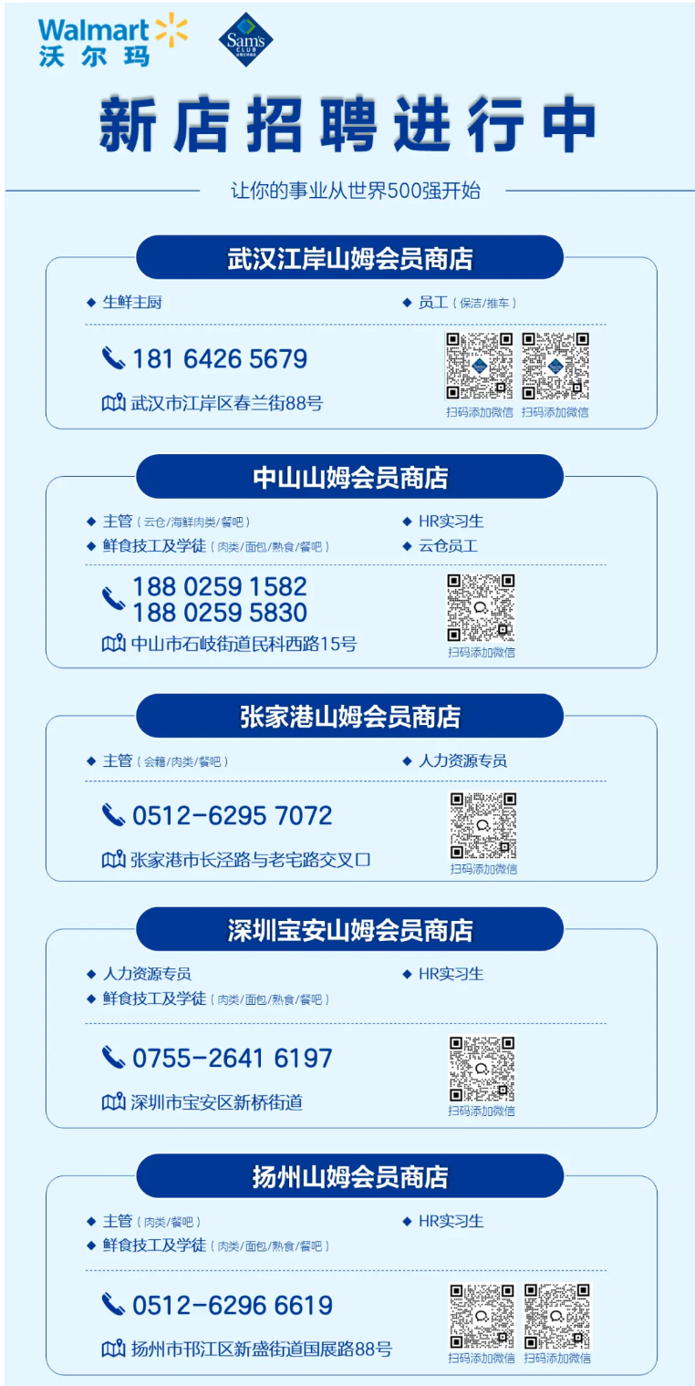 相比2月份的招聘海報(bào),增加了深圳寶安店和江蘇揚(yáng)州店,除了已開業(yè)的嘉興店,合肥經(jīng)開區(qū)店已完成招聘,接下來,合肥經(jīng)開區(qū)山姆會員商店預(yù)計(jì)4月份將迎來開幕,武漢江岸山姆開業(yè)同樣近在咫尺。