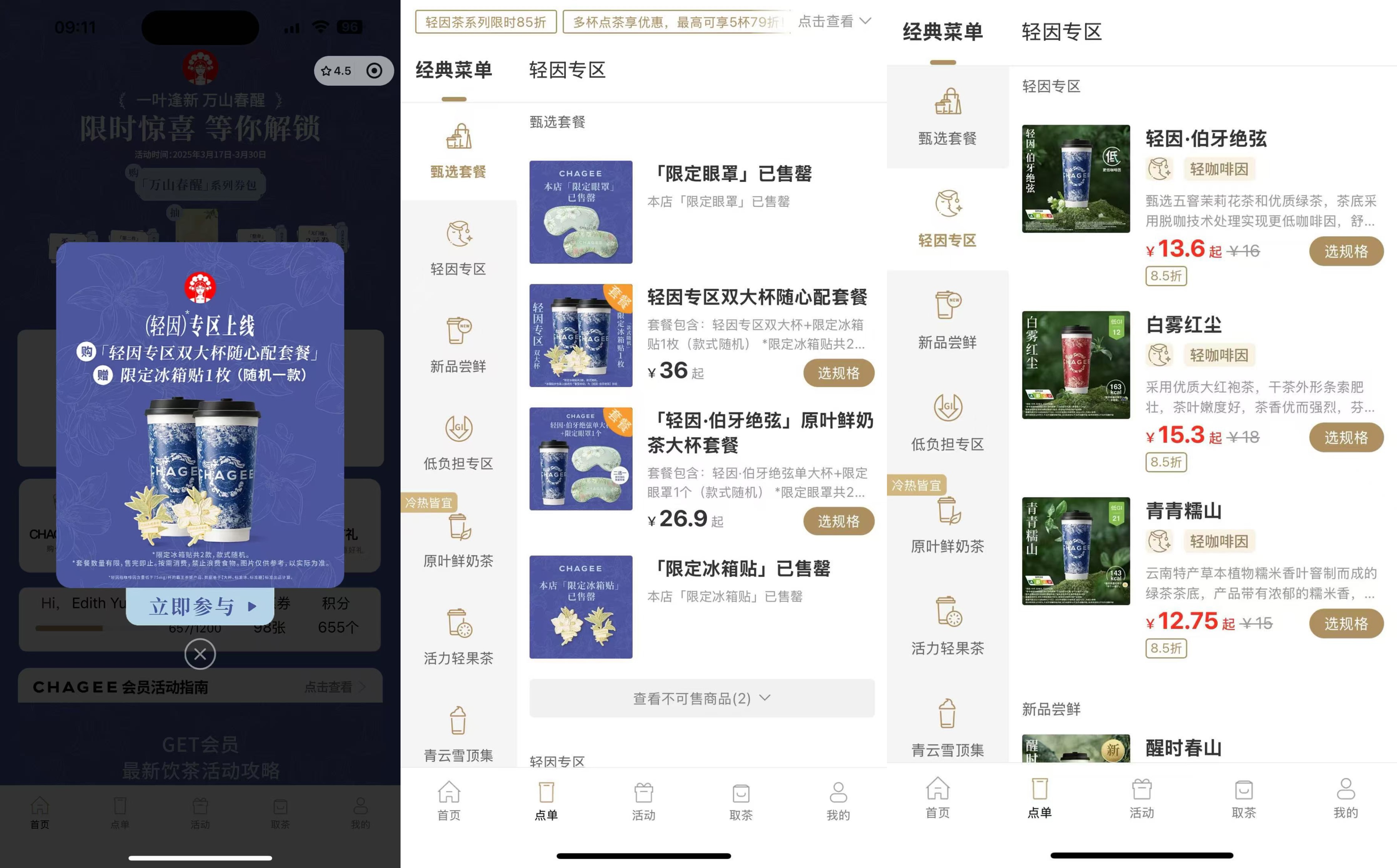 在產(chǎn)品上,3月21日,霸王茶姬正式上新輕因·伯牙絕弦,在大杯、標準冰、標準糖的條件下,每杯咖啡因含量在53mg左右,對比正常版下降了約50%,價格則保持不變。同時,計劃在今年上線0咖啡因版產(chǎn)品。