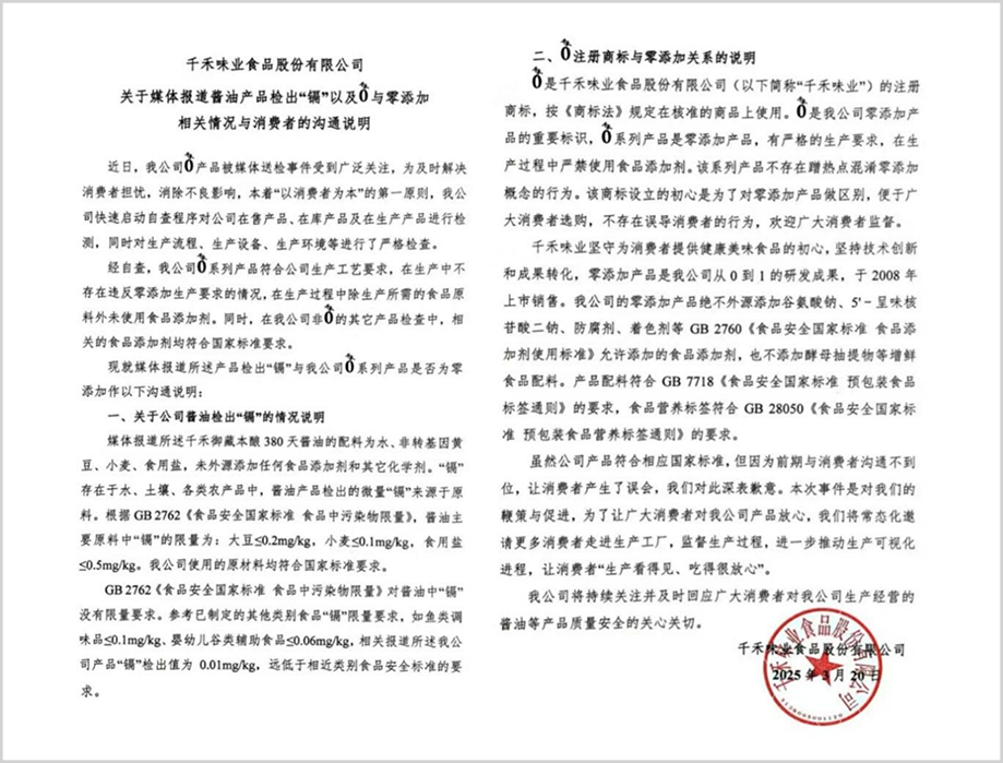 圖源:千禾味業(yè)聲明