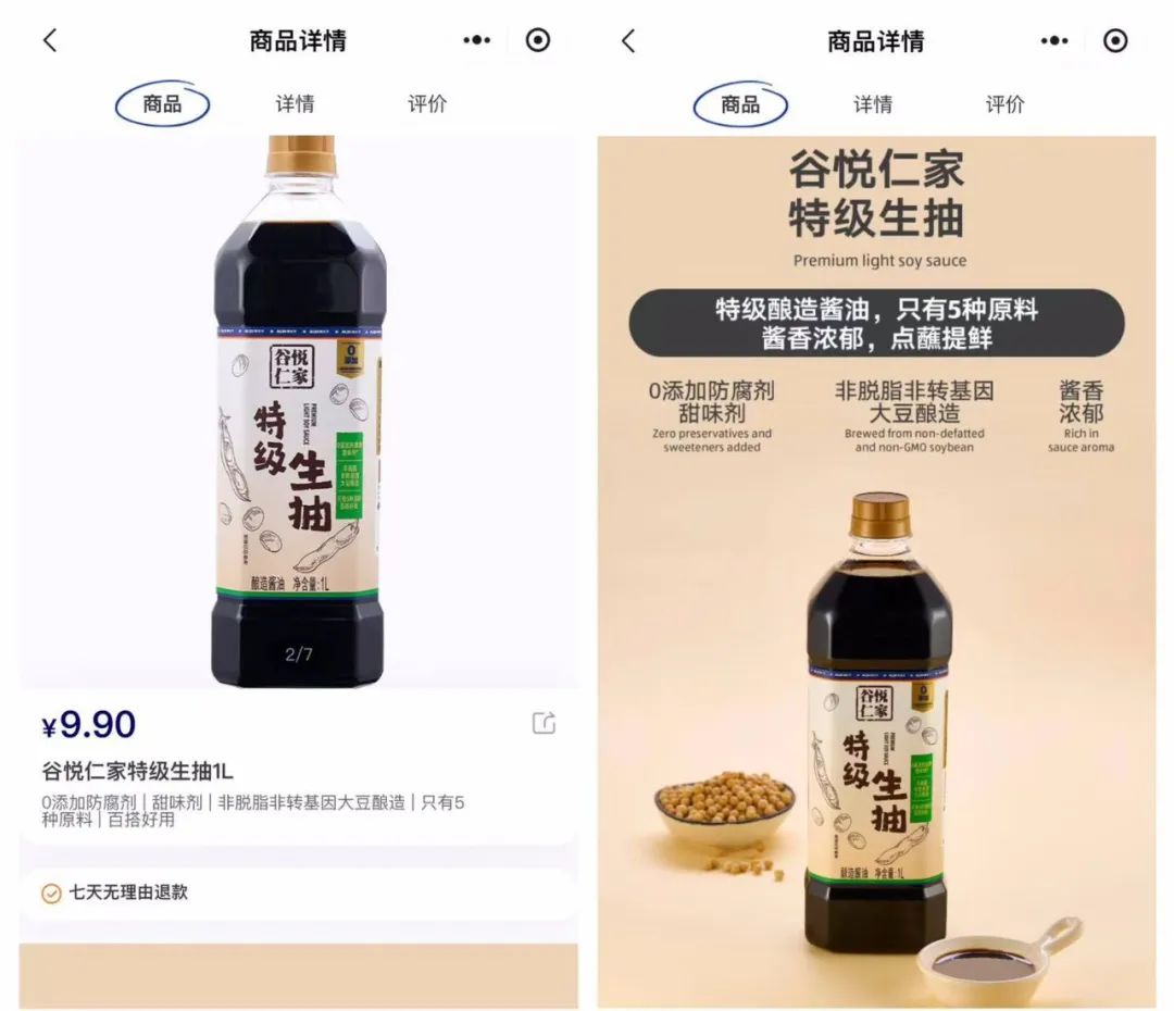 以一款9.9元奧樂齊自牌谷悅?cè)始?升裝特級醬油為例,生產(chǎn)商是大牌海天醬油,工廠直采競標,是適配上?谖兜牧闾砑臃栏瘎⑻鹞秳┑纳椤