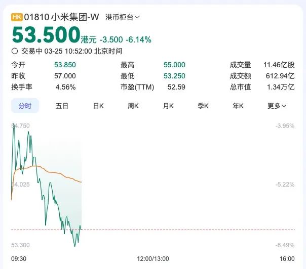 今日港股開盤后,小米集團(tuán)股價下跌超5%,總市值近1.34萬億港元,較昨日收盤市值蒸發(fā)近879億港元。