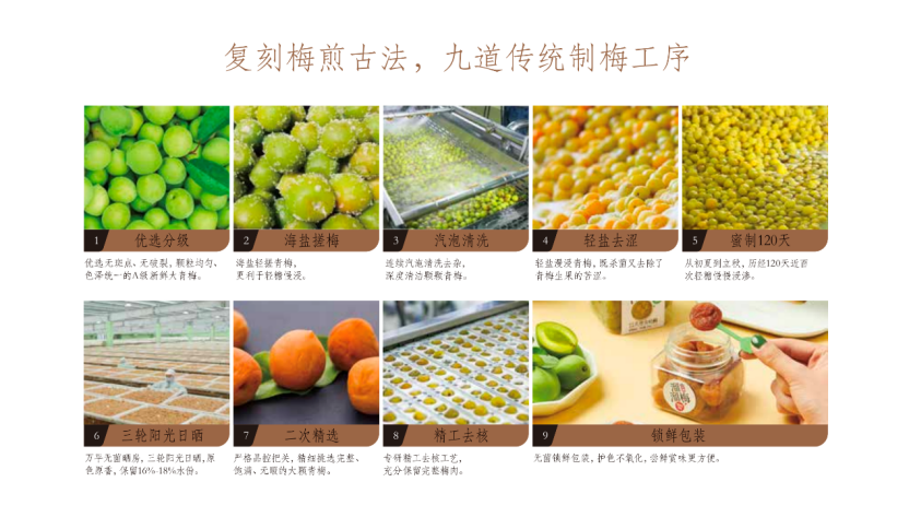 而且溜溜梅花費(fèi)重金投資生產(chǎn)技術(shù),用來(lái)保證產(chǎn)品品質(zhì)。比如溜溜梅的核心“鎖酸”工藝以及零下 38℃極速冷凍鎖鮮工藝,最大程度地保留青梅中的多種天然有機(jī)酸。制作過(guò)程中的所有青梅產(chǎn)品都需嚴(yán)格經(jīng)過(guò)選級(jí)、曬坯、浸料等 19 道工藝,十蒸九曬,全方位保障產(chǎn)品品質(zhì),讓消費(fèi)者吃得更放心。