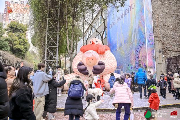 聯(lián)合藝術(shù)家楊東明打造溫暖雪怪IP,通過(guò)裝置、NFC互動(dòng)音頻及音樂(lè)工坊,營(yíng)造冬日奇幻氛圍。
